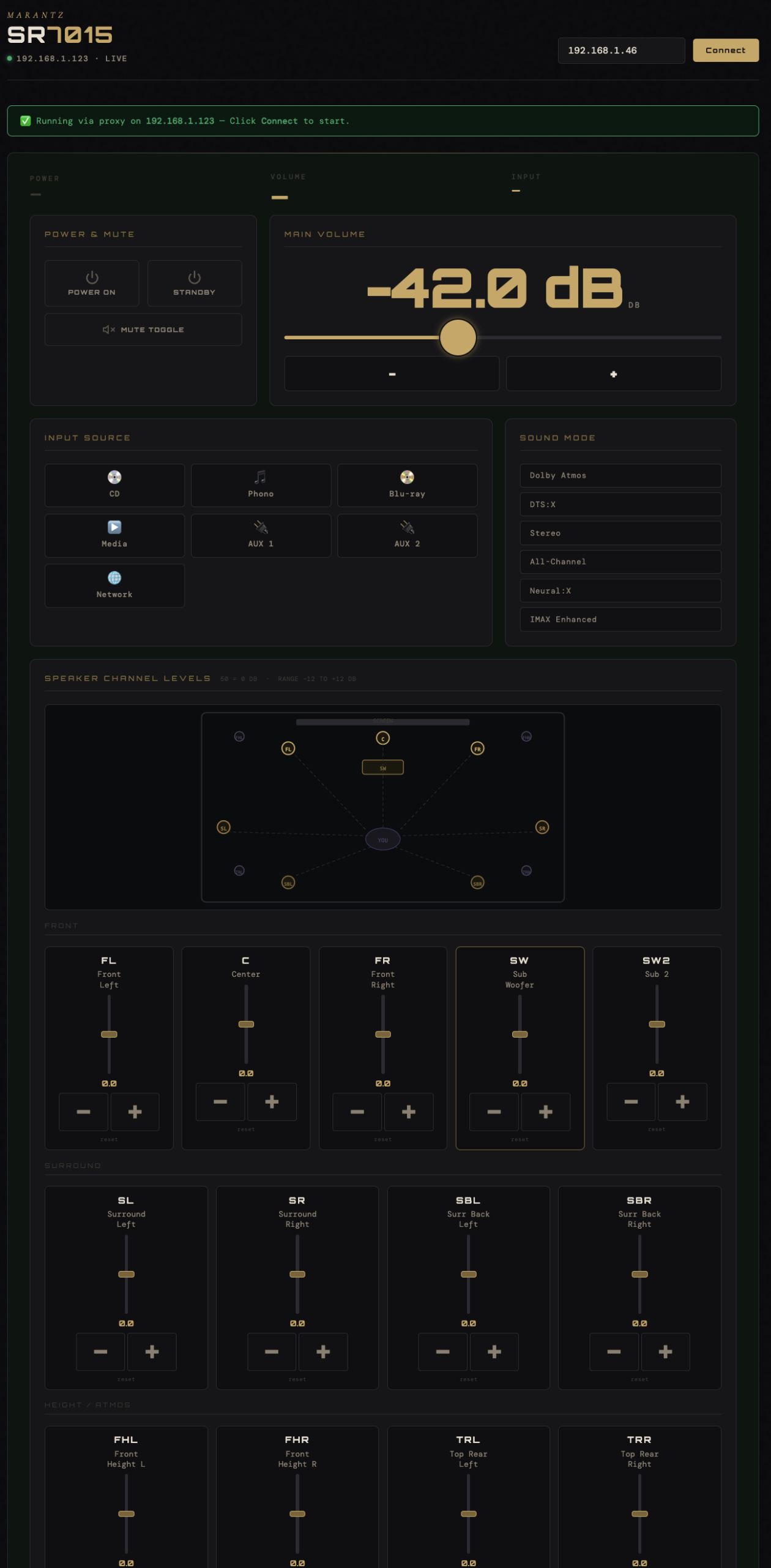 > develop a web interface for the Marantz SR7015 using its APIIt wasn’t just “enough”, it even styled the page with custom fonts and an image of a surround setup. To get it actually working (locally, on my Mac) I just had to give it the error I got